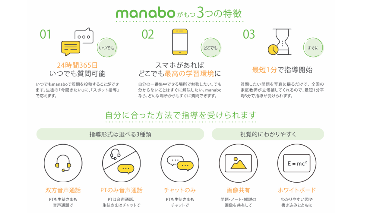 24時間365日、全教科質問受付・スポット指導アプリ(manabo)