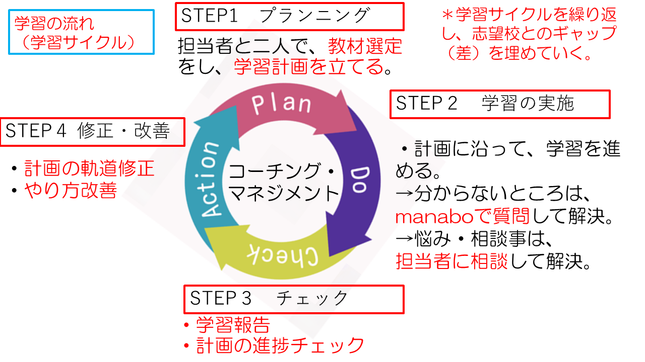 日々の声掛けと計画の進捗確認と修正を繰り返し、着実に学習計画を進めます。